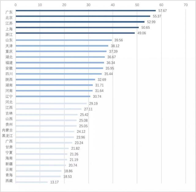 全國各省市創(chuàng)新引領(lǐng)能力指數(shù)