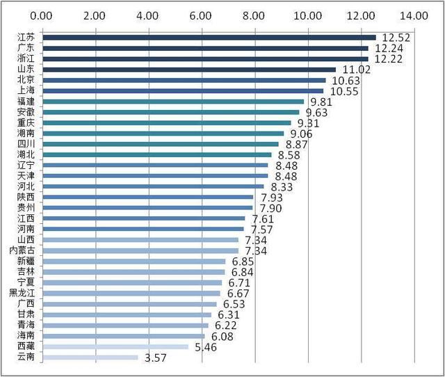 我國高度重視創(chuàng)新能力建設(shè),創(chuàng)新驅(qū)動發(fā)展成為重要國家戰(zhàn)略。全國各省市不斷增強創(chuàng)新引領(lǐng)能力,北京、上海、天津、江蘇、廣東等五個省市創(chuàng)新引領(lǐng)能力全國領(lǐng)先,大多數(shù)省市在各項分指標上發(fā)展不均衡,在區(qū)域分布上我國區(qū)域創(chuàng)新能力水平差異懸殊。